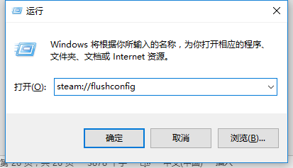 首先,我们还是将键盘上的 Win 和 R 键一起按下,呼出运行对话框。只不过这次我们输入的是steam://flushconfig